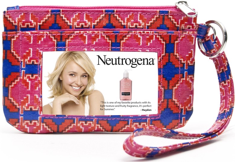 NEUTROGENA® te trae una oferta exclusiva disponible en todas las tiendas Target desde julio hasta agosto. Al comprar dos de los productos NEUTROGENA® favoritos de Hayden Panettiere, recibirás totalmente gratis una bolsa pulsera diseñada especialmente por NEUTROGENA® y Target. Esta bolsa pulsera de diseñador es el accesorio perfecto para añadir un toque de color a tu look de verano.